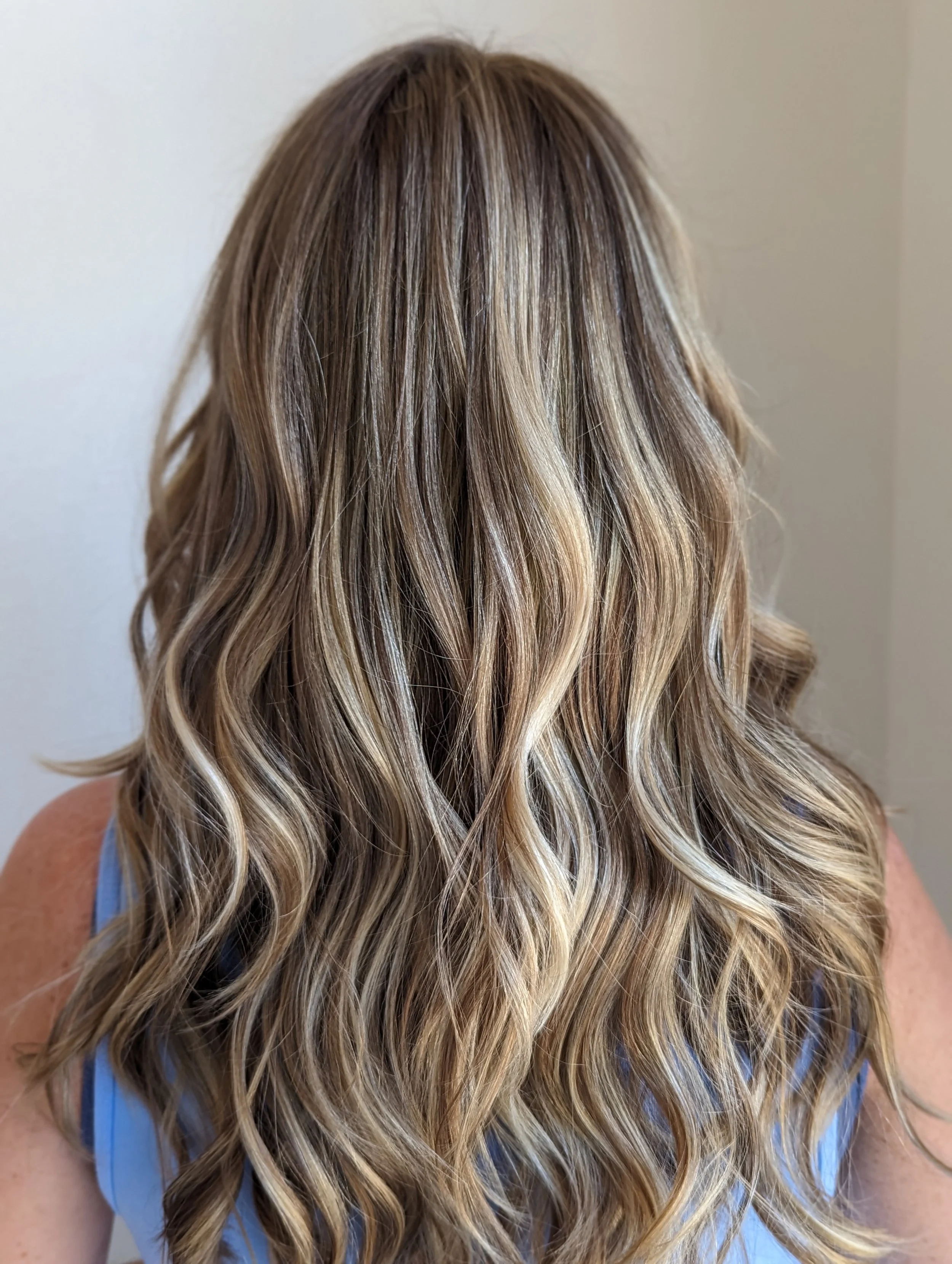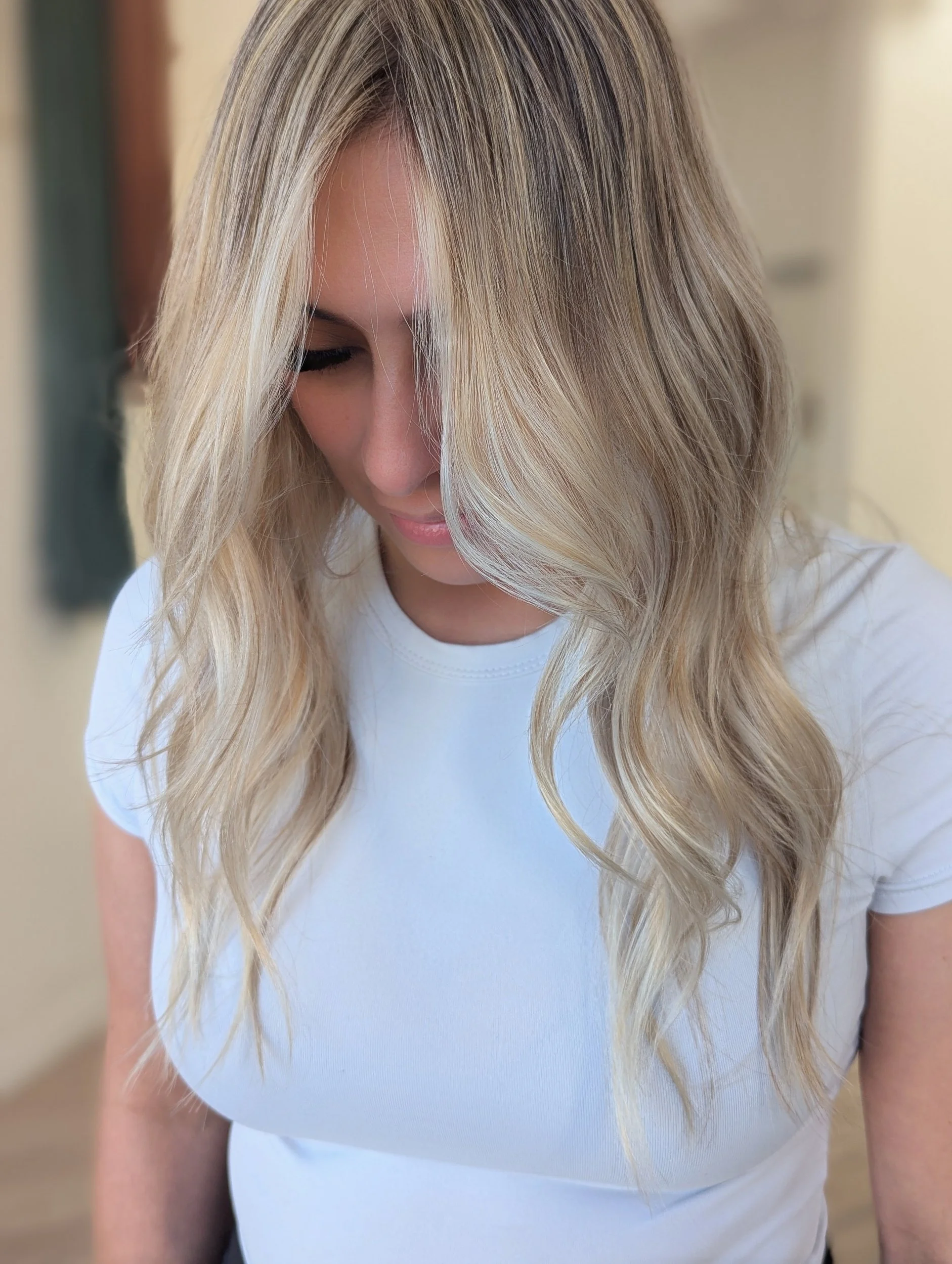 Customized color service including full highlight, balayage, full color, shadow root and glaze